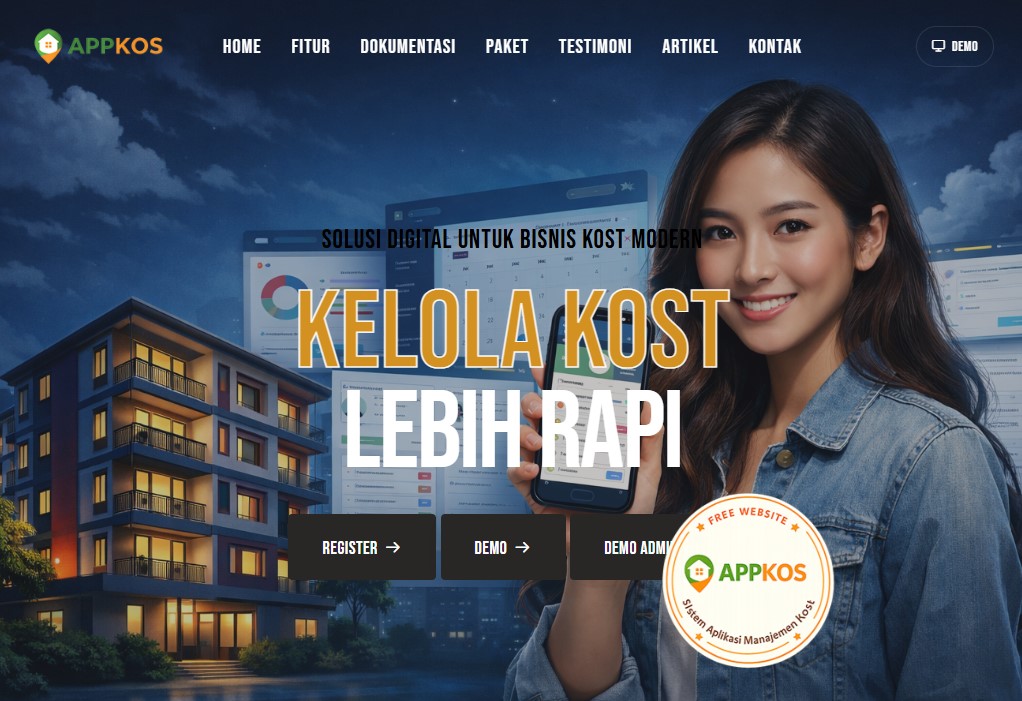 appkos.id — platform manajemen kost berbasis web modern untuk operasional yang rapi, cepat, dan menguntungkan.
