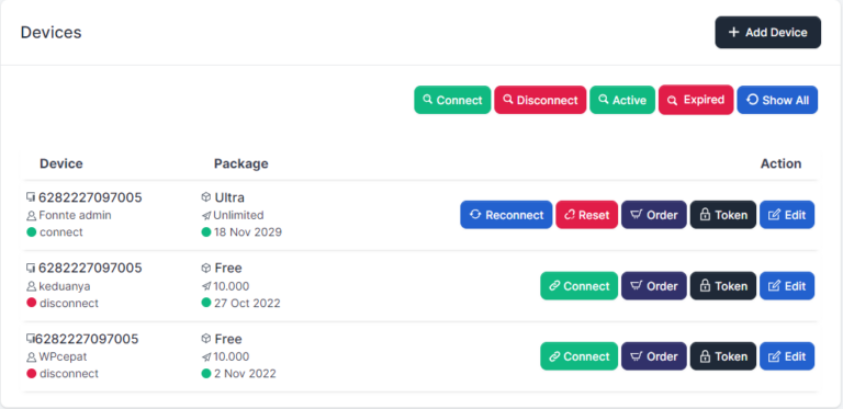 - Connect → Jumlah perangkat yang sedang terhubung ke Fonnte